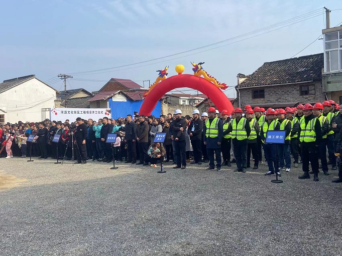 黃山建工集團董事長項端陽、總經理葉金發、副總經理吳學武及項目負責人和部分施工人員參加了寧國市河瀝溪文化街區工程項目的開工盛典。